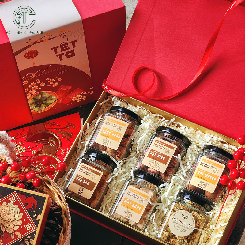 Set hộp quà tết hạt và mứt G407 bao gồm:
